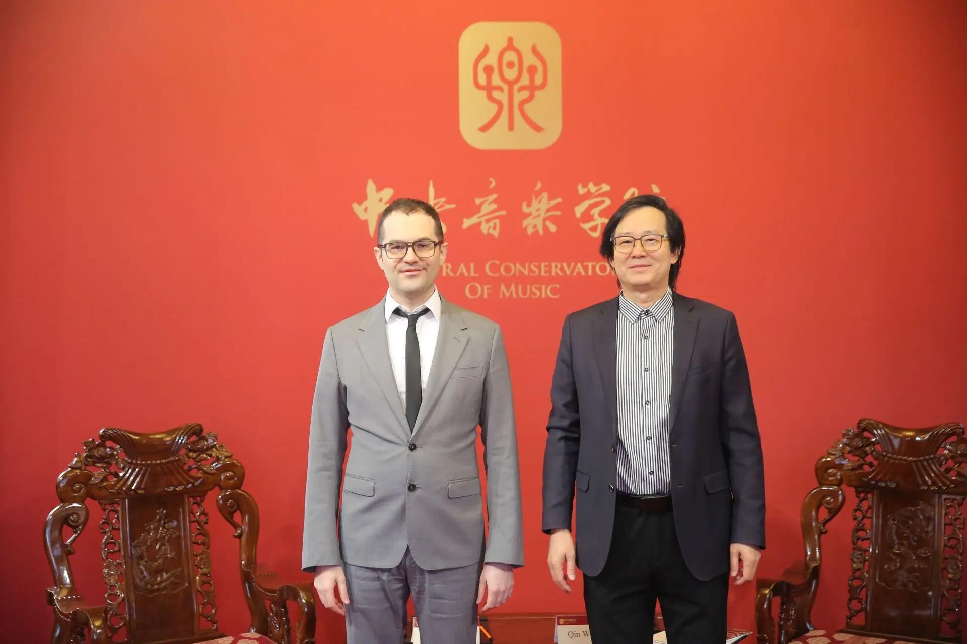 The first visit took place at the Tianjin Conservatory of Music on December 8. The delegation met Professor Bao Yang, vice president and member of the Standing Committee of the Party Committee, together with a delegation of professors from the conservatory.