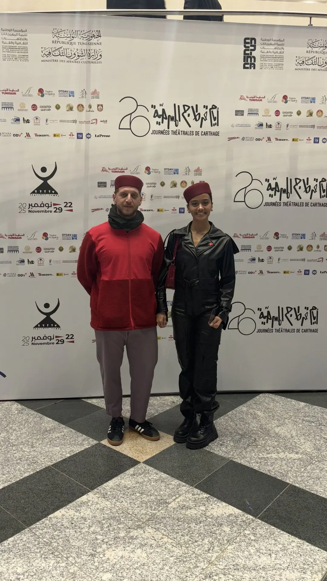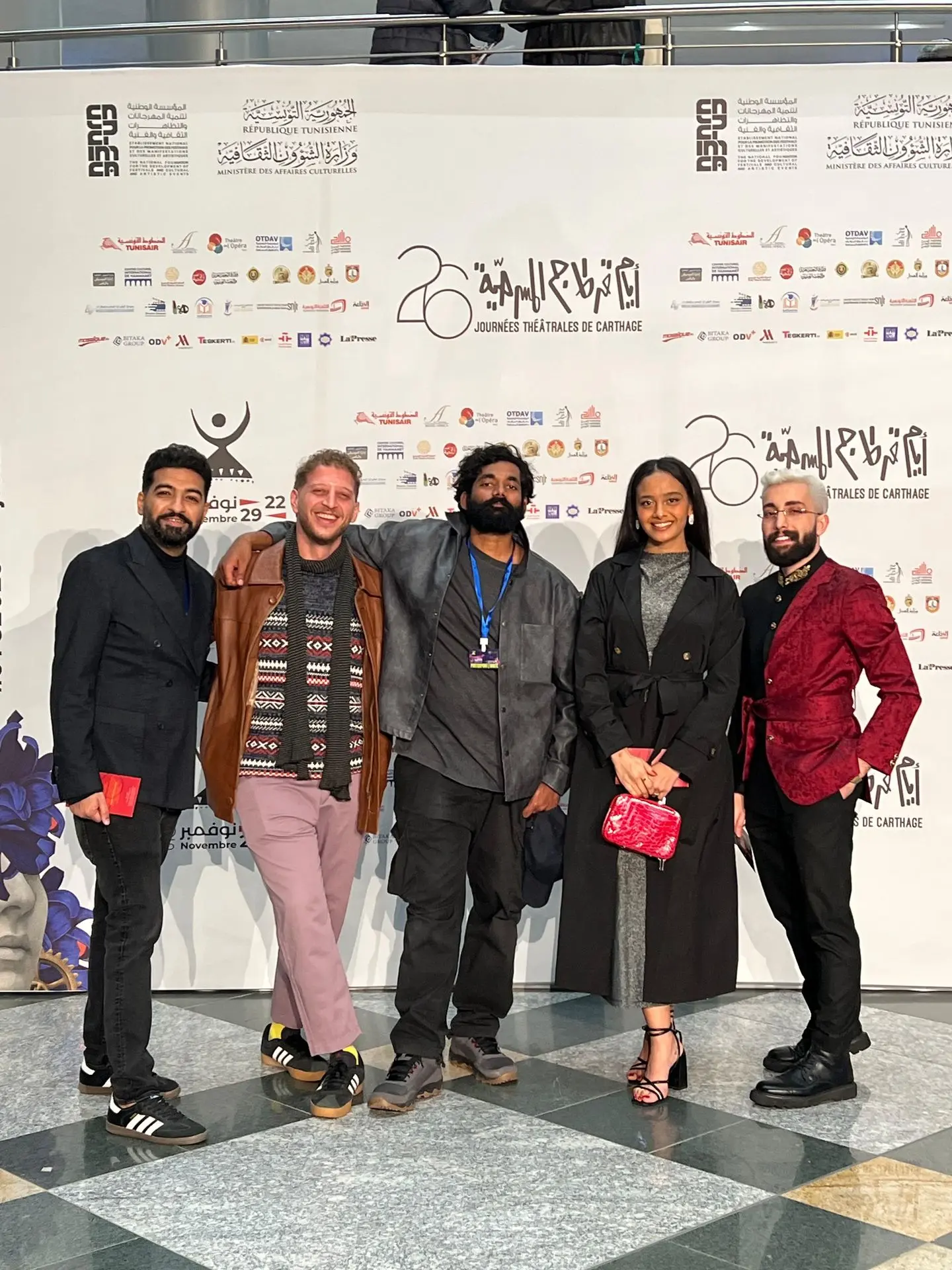 Halima Issaoui, Abdullah Fattal and Mohammed Masharqa performed in the production جر محراثك فوق عظام الموتى (Plough Your Harrow Over the Bones of the Dead), directed by Mohanad Karim. The cast travelled to Tunisia on 22 November and returned on 30 November after presenting their work to festival audiences.